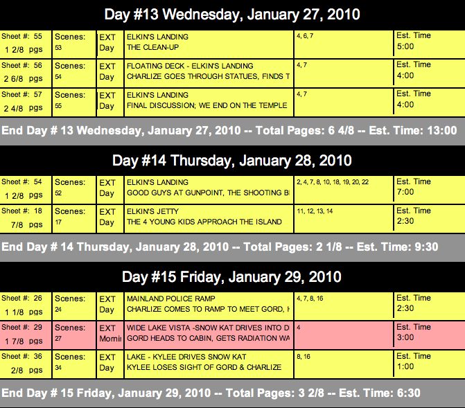 Movie Magic Scheduling offers many scheduling options; I have named just a few of the elements that it has to offer. I recommend downloading the 5 day demo from the Entertainment Partners website and playing around with it to see if it is the right fit for you. It makes scheduling easy and creates clear and concise documents that you can send out to your crew.
